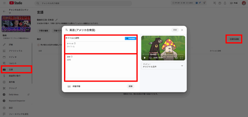 2. タイトルと説明に追加言語を設定する