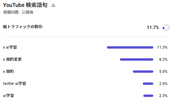 5. アナリティクスの「YouTube検索語句」で狙ったキーワードが表示されているか確認