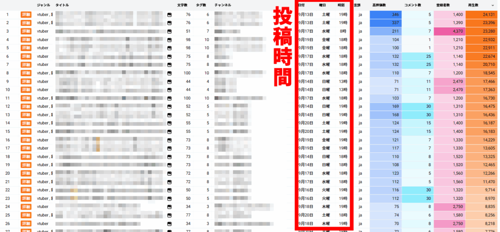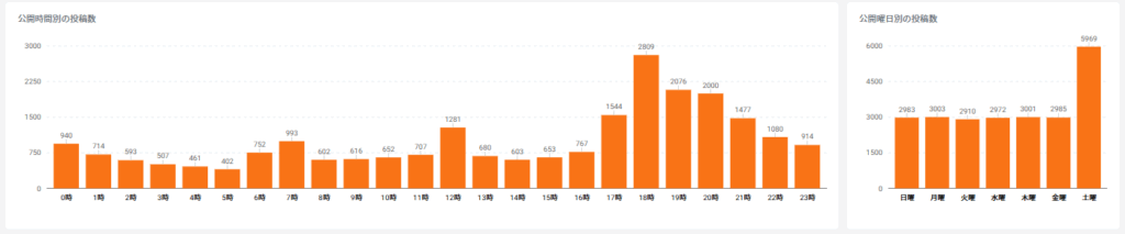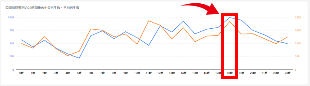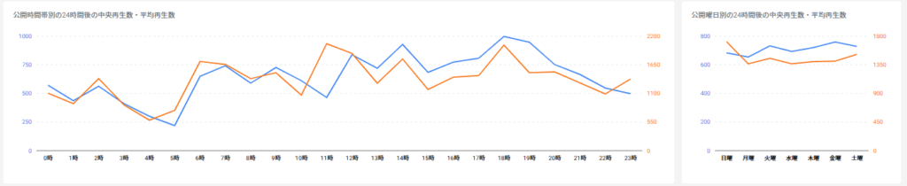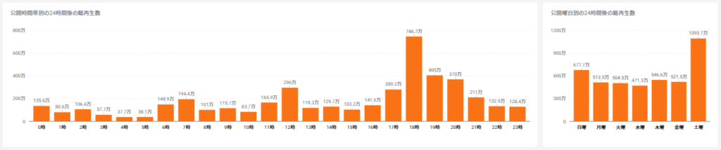 どの時間帯や曜日に投稿すれば再生数が伸ばしやすいか参考にできます。