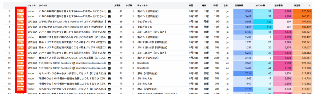 全てのShortsがデータベースに記録されるわけではなく、Vクエ大学の収集ツールの検索にヒットしたShortsのみが反映されています。