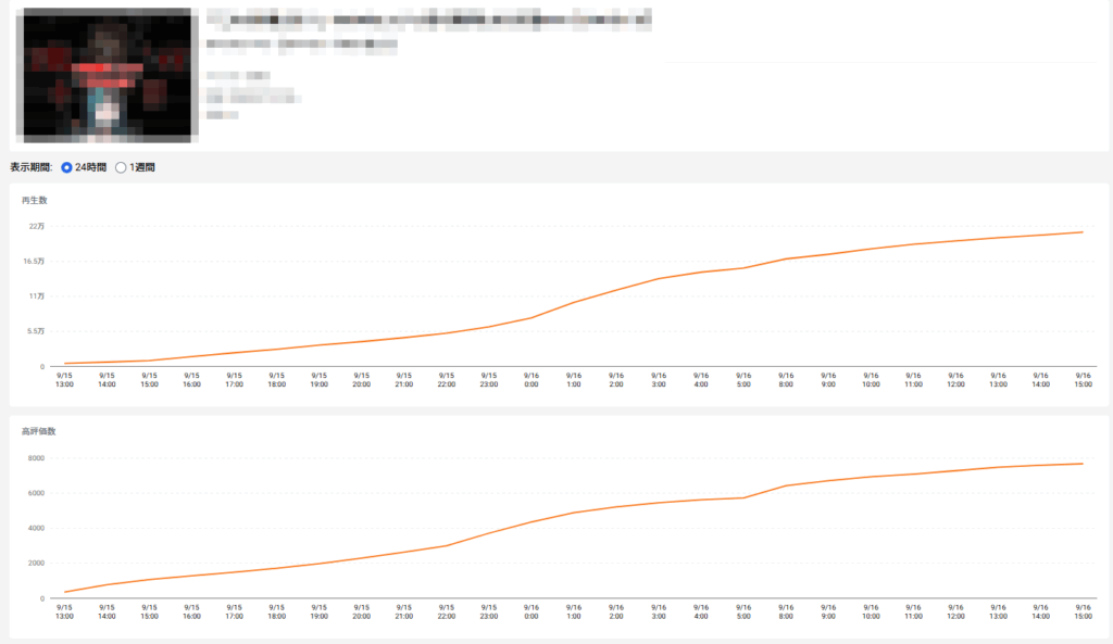多くの会員様は「何時に投稿すれば最も伸びるのか?」をデータで確認しています。「公開時間帯別の24時間後の中央再生数・平均再生数」を参考にして、効果的な投稿時間を決めています。