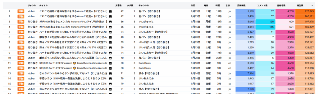 ランキングのトップ勢のShortsを分析することで、伸びるShortsのアルゴリズムの特徴が掴めます。