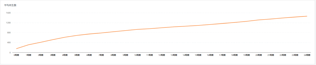 平均再生数の推移では、Shortsが投稿されてから24時間の再生数の動きを確認できます。どのタイミングで再生数が大きく伸びるのかが分かるため、フィードに乗っているタイミングを把握することが可能です。