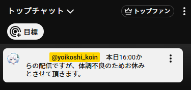 Xの投稿を見逃した人も、YouTubeの待機枠を開いた時点で一目でお休みや時間変更が分かります。