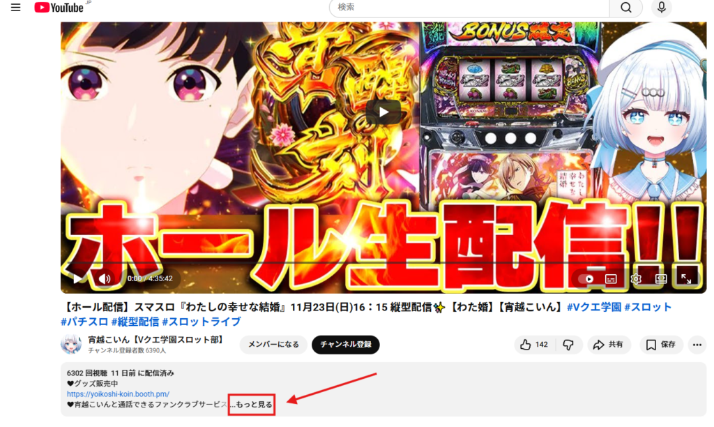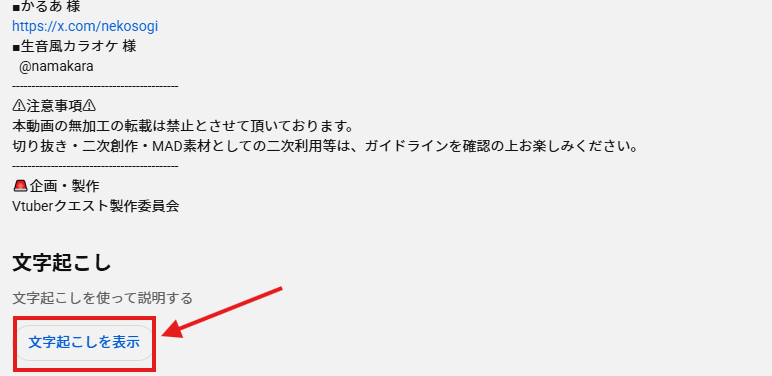 2.概要欄の最下部に「文字起こしを表示」を選択