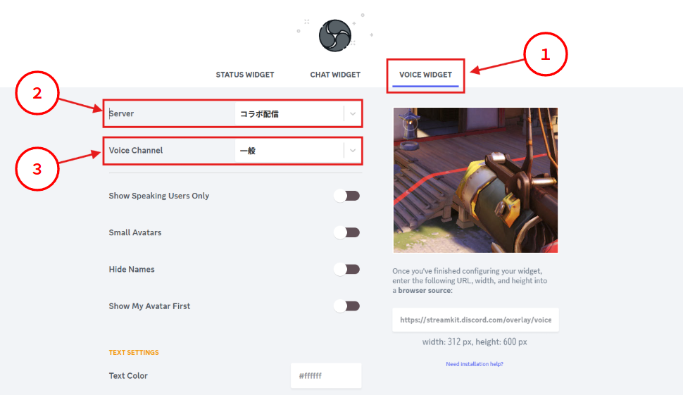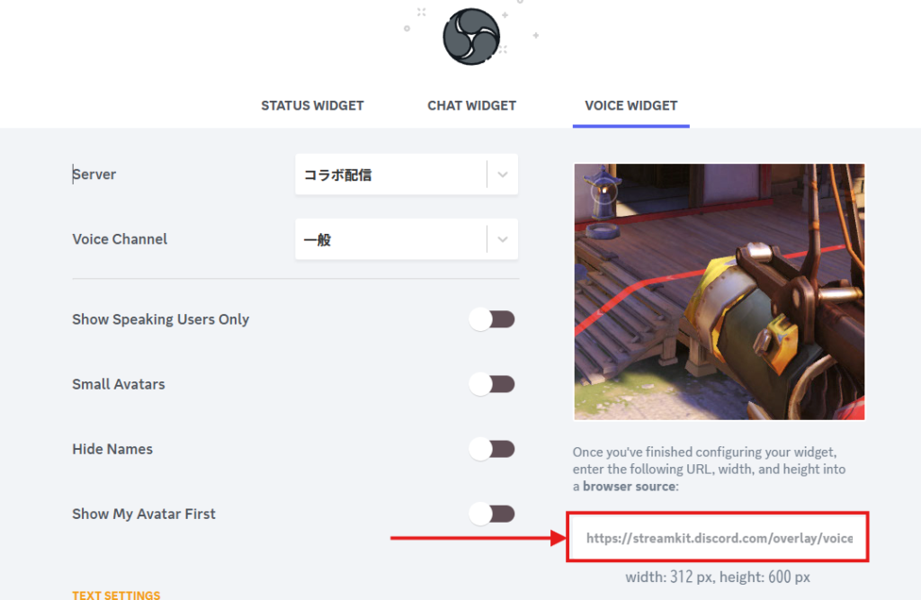 - URL:Discord StreamKit OverlayからコピーしたURLを入力