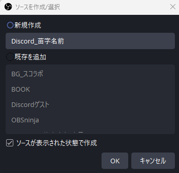 複数人とコラボする場合は、必ずソース名を設定しましょう。人数が増えてくると、誰が誰の映像か分からなくなりがちです。