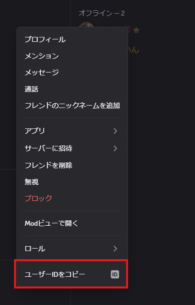 ② 表示したい相手のDiscordユーザーIDを取得