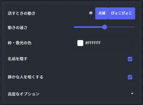 - 話すときの動き(ぴょこぴょこ・点滅など)