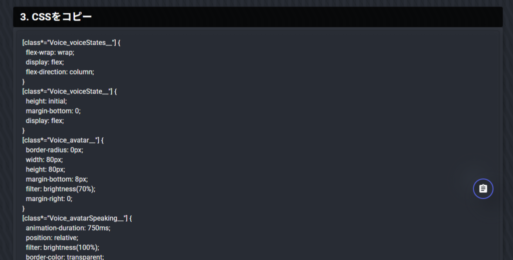 ③ カスタムCSSをコピー