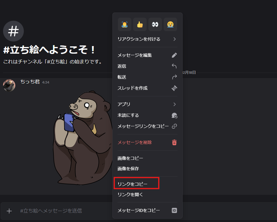 - 立ち絵を表示したい相手の「アイコン or ユーザー名」を右クリック